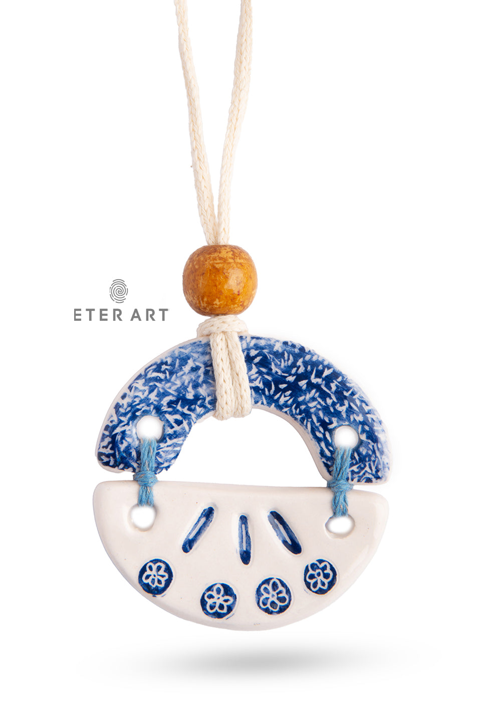 - Design: A combination of beautiful blue and white colors with decorative textures that give the necklace a distinctive look.